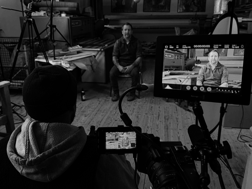 Mit Johann Weber sitzt so ein Charaker für den Imagefilm vor der Kamera.